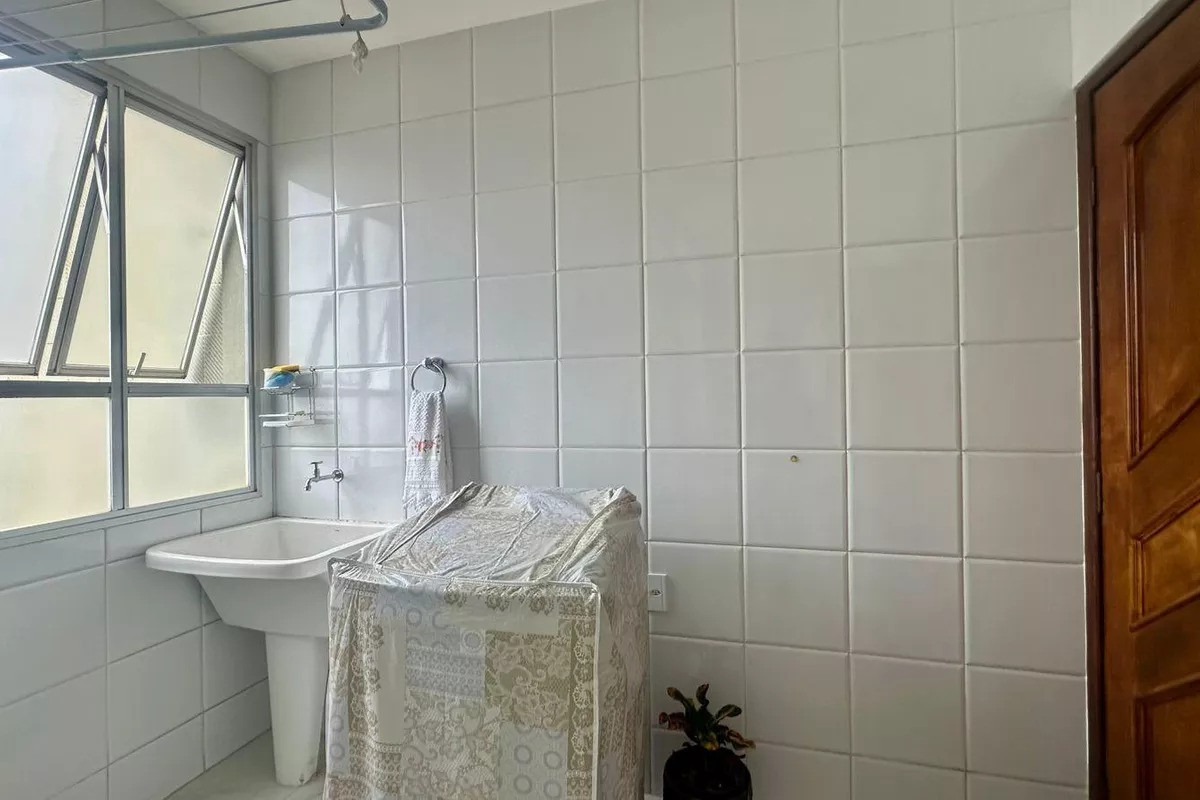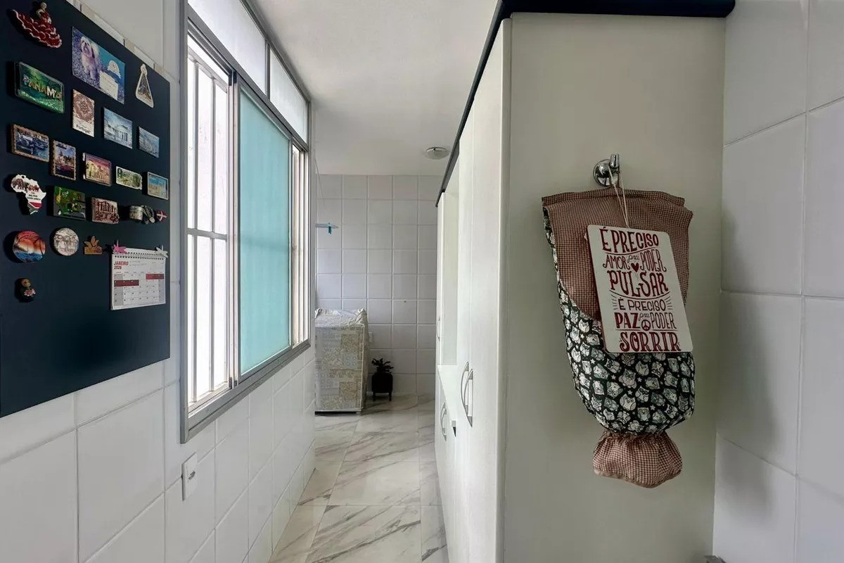 O quarto de empregada foi integrado à área de serviço, proporcionando ampliação do espaço, mantendo o banheiro de apoio.