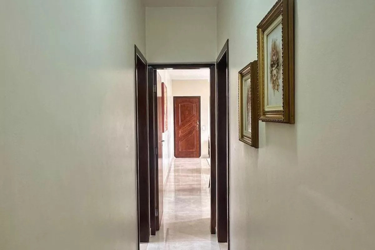 03 quartos com armários planejados e piso em porcelanato, sendo 01 suíte; um deles foi adaptado para um home office funcional e confortável.