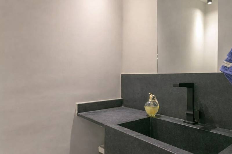 Lavabo com excelente acabamento e espelho.