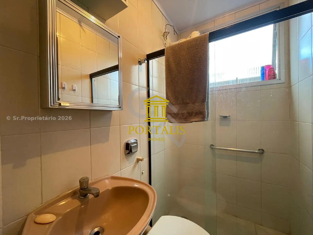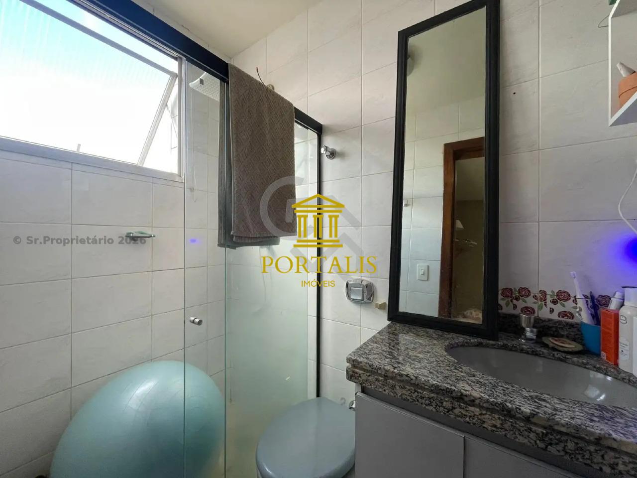 Banheiros (social e suíte) com ótimo acabamento, espelho e box em blindex.