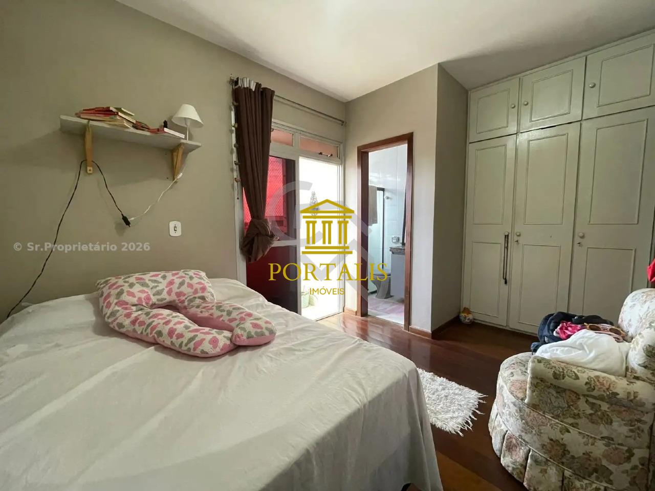 03 quartos com armários planejados e piso em tábua corrida, sendo 01 suíte com varanda.