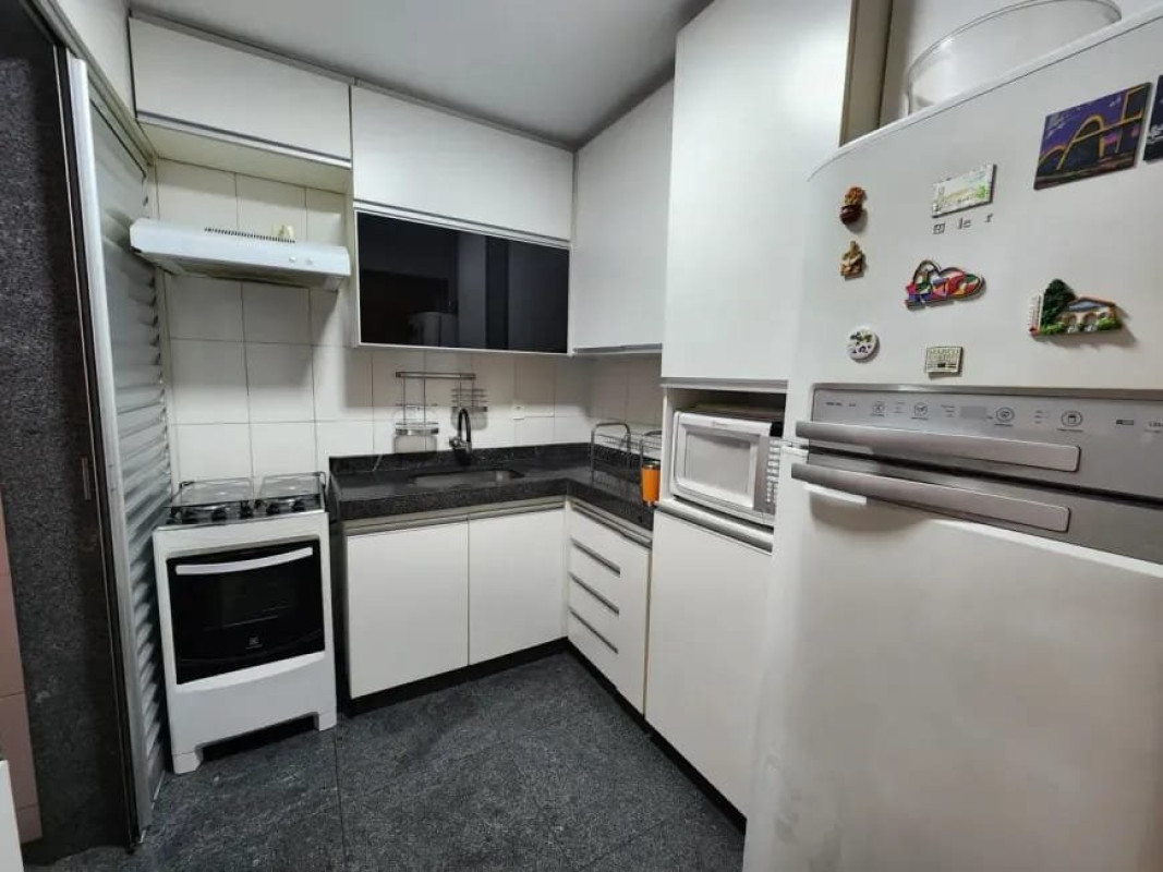 Apartamento com área de 97m², sala para 02 ambientes, piso em porcelanato, 03 quartos com armários, sendo 01 suíte, banho social e suíte com armários, bancada de granito e box de vidro temperado, cozinha com armários planejados, piso e bancada em granito, área de serviço e banho de serviço.
