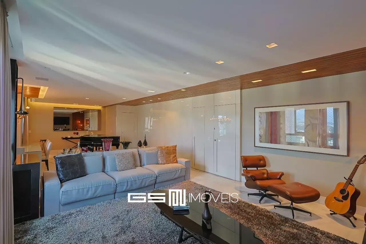 O apartamento possui piso em mármore com sala para 2 dois ambientes, varanda, 3 suítes e 5