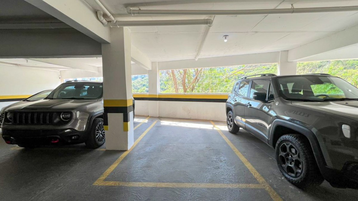 3 vagas de garagem cobertas e demarcadas (2 em linha e 1 livre).