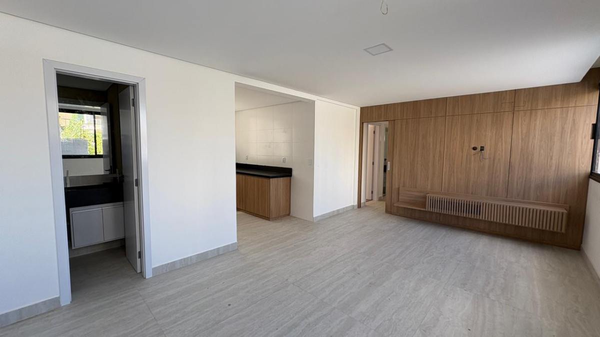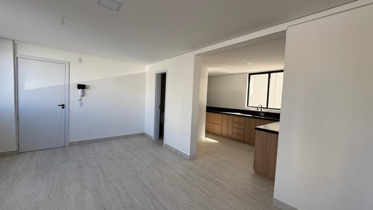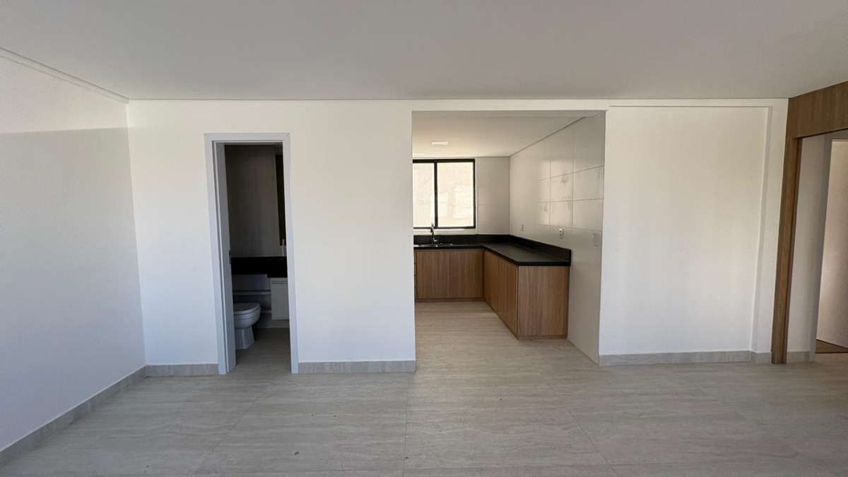 Apartamento com aproximadamente 95m² de área interna, composto por uma ampla sala para 2 ambientes integrada à cozinha, proporcionando um espaço moderno e funcional, com piso em porcelanato de alto padrão.