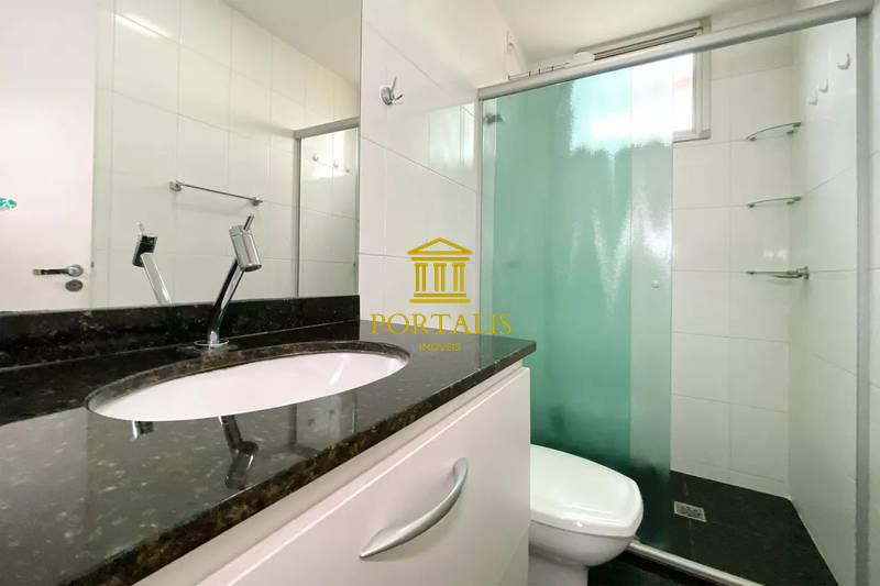 * Banheiro social (e suíte) com armários, bancada em granito e box blindex
