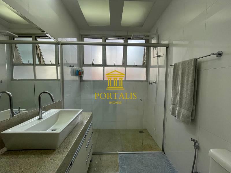 Banheiros (social e suítes) com ótimo acabamento, box em blindex, armários e espelhos.