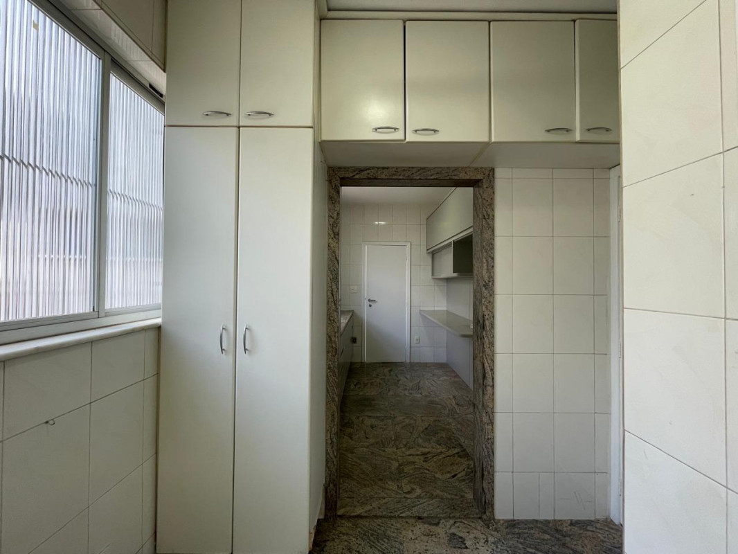 Apartamento com área de 120m², sala ampla para 02 ambientes, com iluminação planejada, piso em mármore e varanda integrada, 03 quartos com armários planejados e piso em tábua corrida, sendo 01, banheiros (social e suíte) completos com armários planejados novos, espelhos e box em blindex, cozinha funcional com marcenaria nova, armários planejados, bancada e piso em granito, área de serviço independente com armário e DCE.